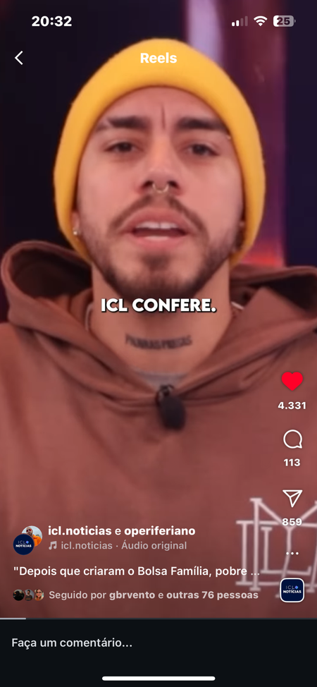 Quadro semanal para o Instagram do ICL Notícias. Ajudo com apuração, roteiro e gravação.